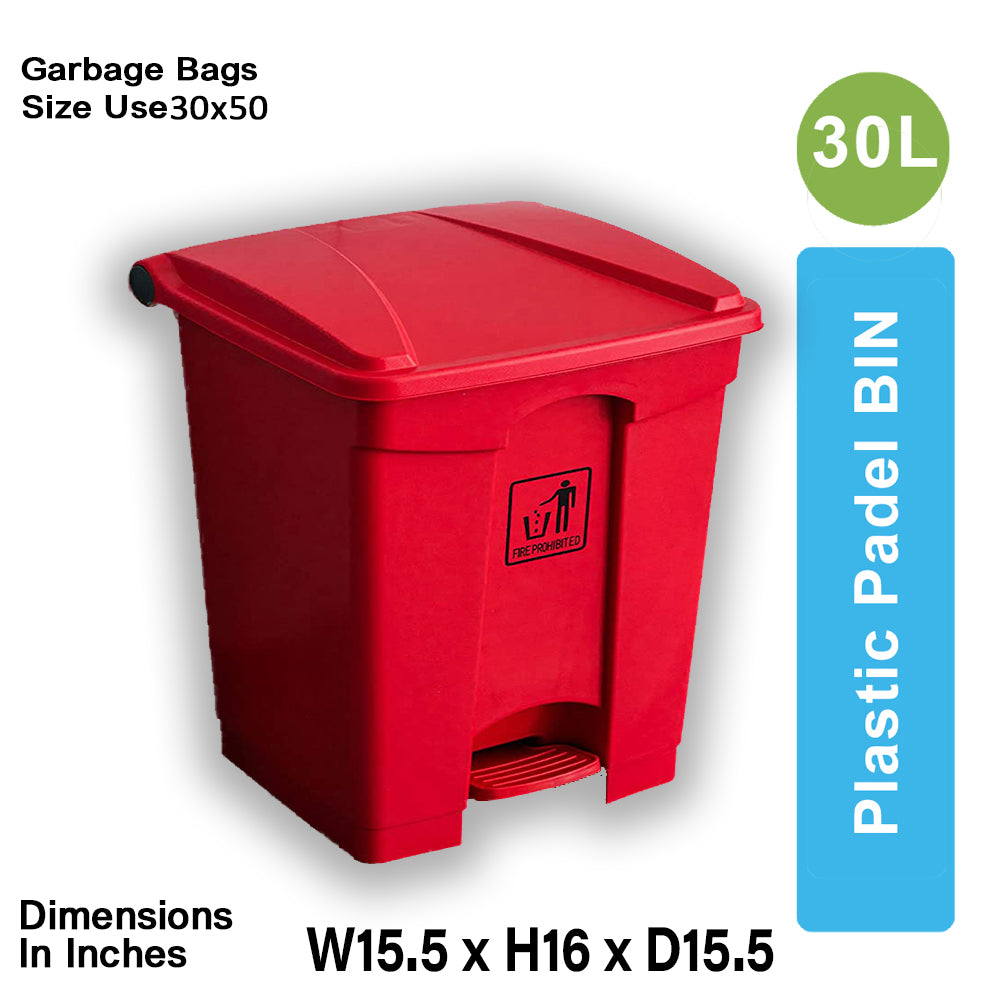 Plastic Pedal Bin-30L (Red) is the best quality dustbin by Al Clean.pk that you can buy online in Pakistan.