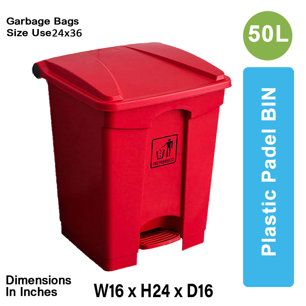 Plastic Pedal Bin-50L (Red) is the best quality dustbin by Al Clean.pk that you can buy online in Pakistan.