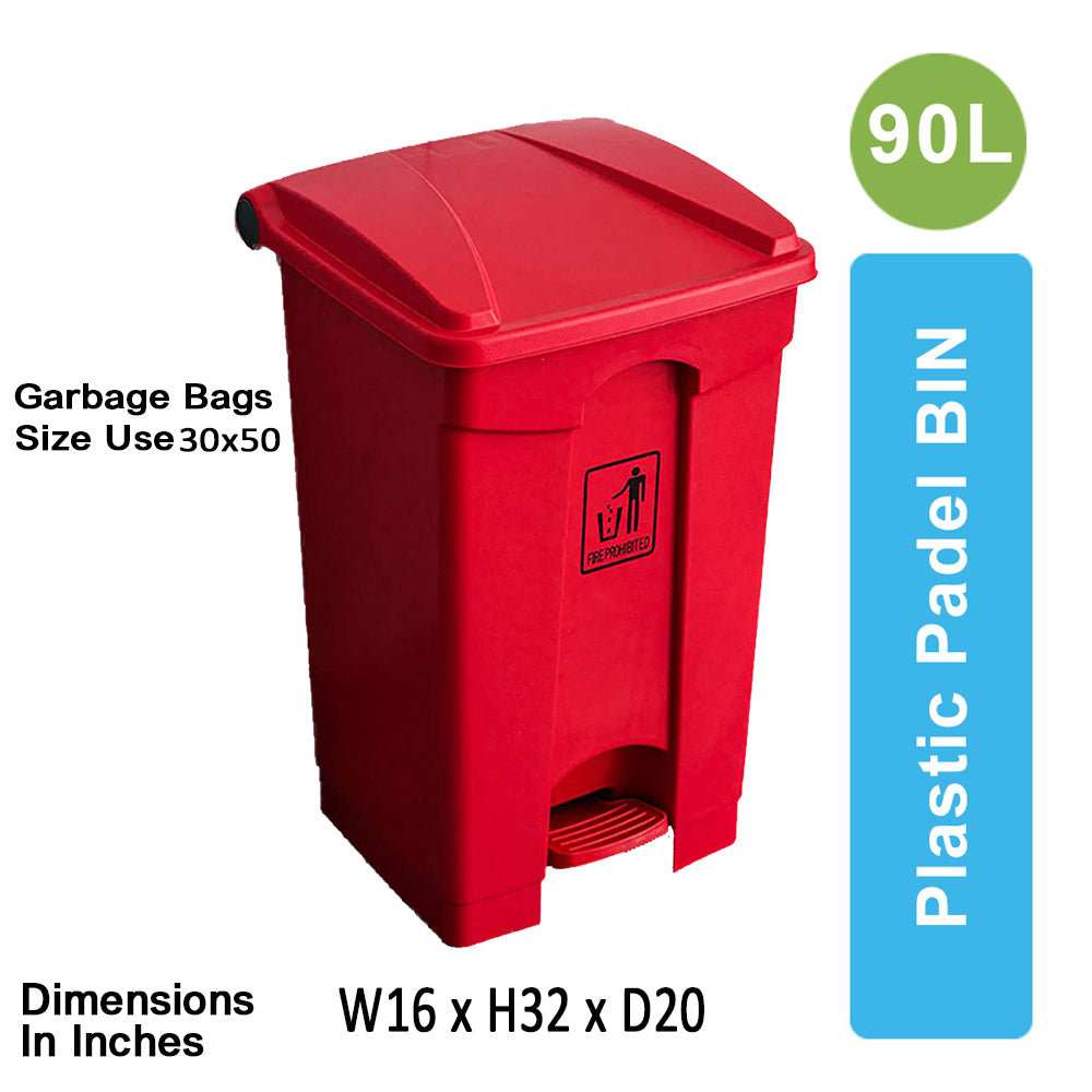 Plastic Pedal Bin-90L (Red) is the best quality bin by Al Clean.pk that you can buy online in Pakistan.