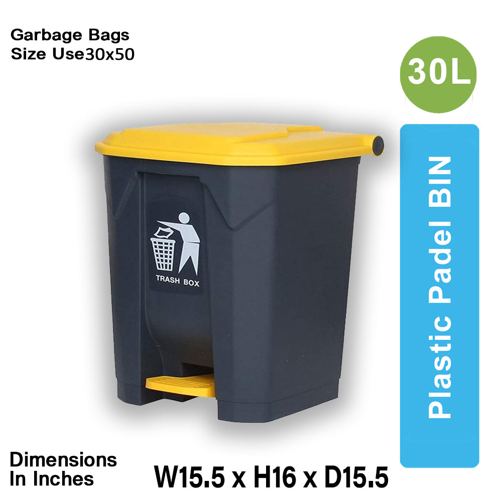 Plastic Pedal Bin-30L (Black/Yellow) is the best quality dustbin by Al Clean.pk that you can buy online in Pakistan.