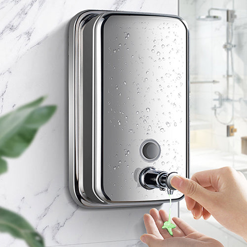 Alclean's wall mounted soap dispenser is made of premium quality stainless steel. It is refillable and can store up to 1000ml of liquid soap. Ideal for shopping malls, offices, schools, etc.