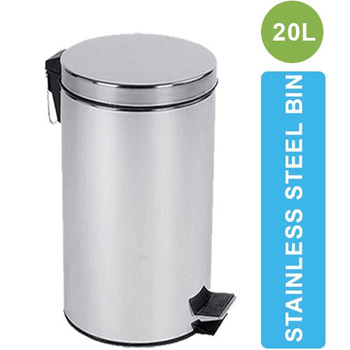Alclean's stainless steel dustbin with a pedal, having a capacity of 20l.