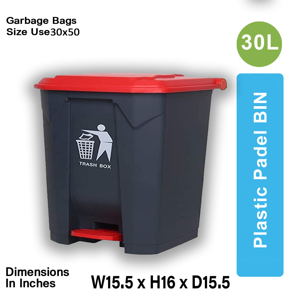 Plastic Pedal Bin-30L (Black/Red) is the best quality dustbin by Al Clean.pk that you can buy online in Pakistan.